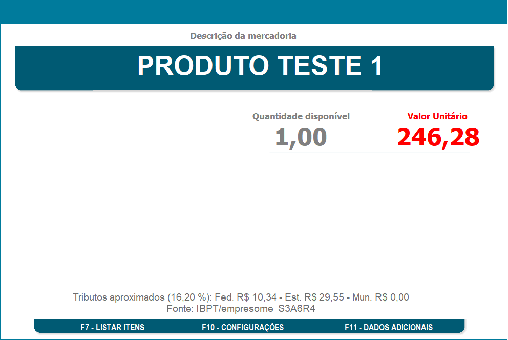 Após pesquisar o produto pressione F11 - DADOS ADICIONAIS para verificar mais detalhes dos dados do produto no Estoque, ou a Foto do produto ou os Produtos Similares vinculados ao item consultado.