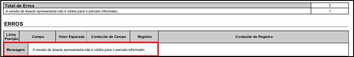 A versão do leiaute apresentada não é válida para o período informado. no Clipp