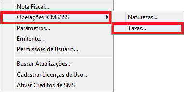 - Dentro do Clipp Pro ainda, acesse as Configurações > Operações ICMS/ISS > Taxas: