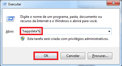- Na tela apresentada digite %appdata% e clique em OK: