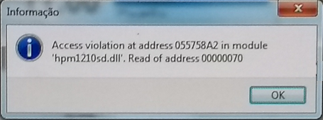 Access violation at address 055758 A2 in module 'hpm1210sd.dll'. Read of address 00000070
