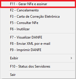 - Clique com o botão direito do mouse sobre a nota e escolha a opção F11 - Gerar NFe e assinar: