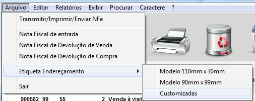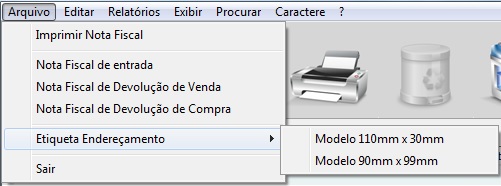 - Após finalizada a nota, ainda no módulo de Nota Fiscal de Venda/Eletrônica acesse o menu Arquivo > Etiqueta Endereçamento: