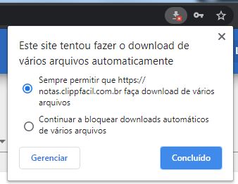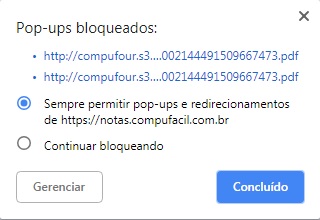 localizada próxima ao endereço da página e marque a opção Sempre permitir pop-ups e redirecionamentos de https://notas.compufacil.com.br e clique em Concluído.
