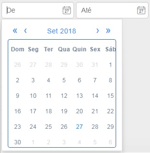 Nos campos, digite o período em que deseja efetuar o filtro, ou, ao clicar no campo exibirá o calendário para que possa selecionar manualmente as datas.