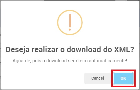 Ao clicar nesta opção, irá apresentar a tela de confirmação, notificando que o download dos arquivos será feito, clique no botão Ok. A partir daqui, seu arquivo XML será salvo no computador compactando automaticamente.
