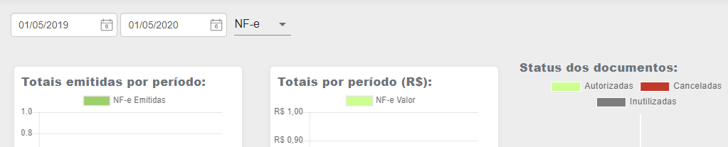 Para efetuar o filtro, ao lado esquerdo da tela terá a opção para inserir o período que deseja exibir os documentos fiscais.