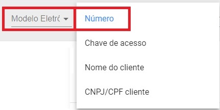 É possível também localizar o documento eletrônico desejado buscando pelo número, Chave de Acesso, Nome do Cliente e CNPJ/CPF cliente. No exemplo abaixo utilizaremos o filtro por Número do documento.