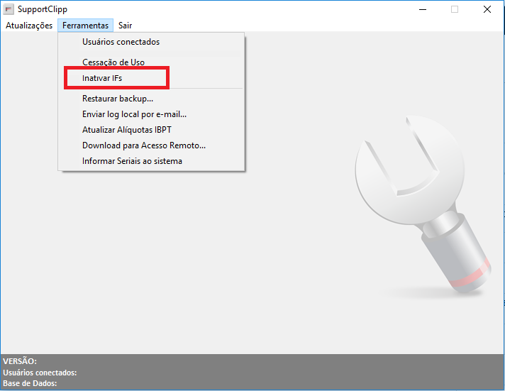 - Dentro do Supportclipp clique em Ferramentas / Inativar IFs