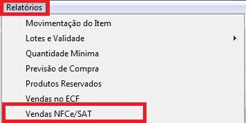 - Agora, clique em Relatórios - Vendas na NFC-e/SAT