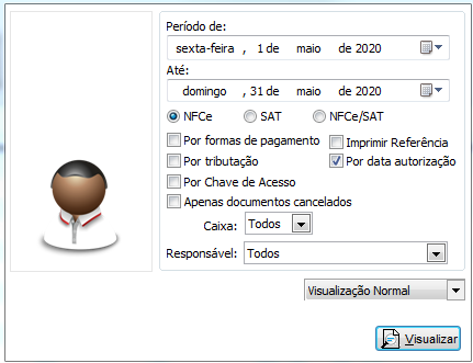 - NFCe - SAT - NFCe/SAT - Selecione o tipo de documento que constará no relatório, lembrando que o SAT é para os estados CE e SP.