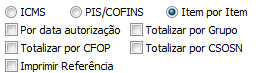 - Item por Item - Poderá gerar um subfiltro nos itens do relatório, poderá Totalizar por grupo, Totalizar por CFOP e Totalizar por CST