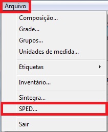 - Para gerar os arquivos do Bloco K, acesse o módulo de Estoque, clique em Arquivo - SPED.