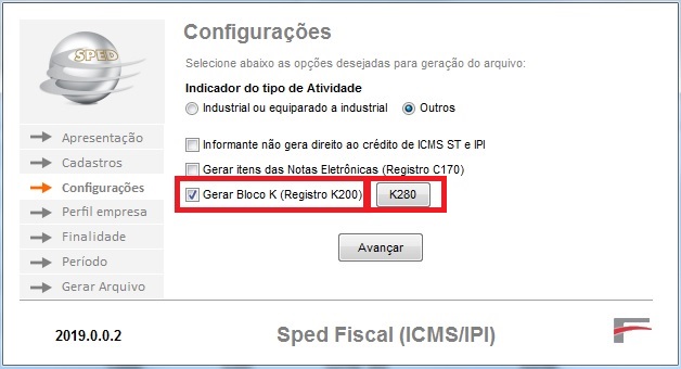 para gerar o SPED com o Bloco K.