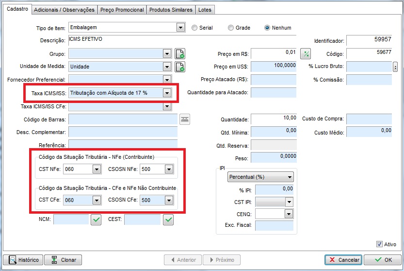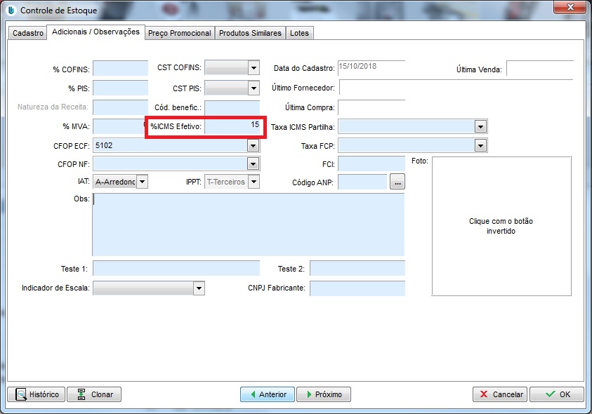 OBS: Para saber qual porcentagem de ICMS efetivo deve utilizar, consulte sua contabilidade.