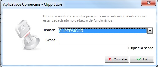 - Acesse o sistema e insira a senha do Supervisor ou do Gerente.