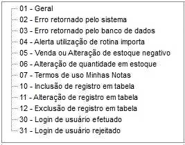 Abrirá a visualização de eventos de auditoria do sistema, nesta tela demonstrará o que ocorreu no sistema, separando por usuário.