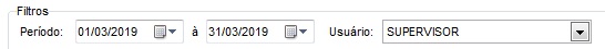 É possível filtrar por data e usuário, para isso, defina a data e o usuário localizados no início da tela, no exemplo abaixo vamos gerar uma auditoria do mês 03 do usuário SUPERVISOR.