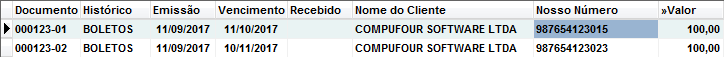 Observação: Todas as Contas das quais já foram gerados Boletos terão o campo Nosso Número preenchido no contas a receber.