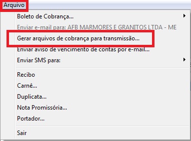 clique no Menu Arquivo - Gerar arquivo cobrança para transmissão: