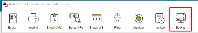 Na tela quer abrirá, clique no ícone de Backup dos arquivos XML: