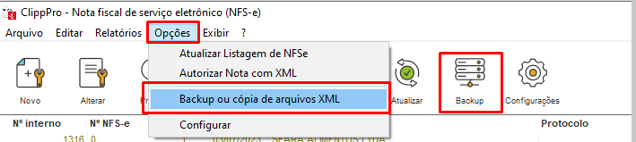Backup ou Cópia de Arquivos XML da NFS-e no Clipp Pro