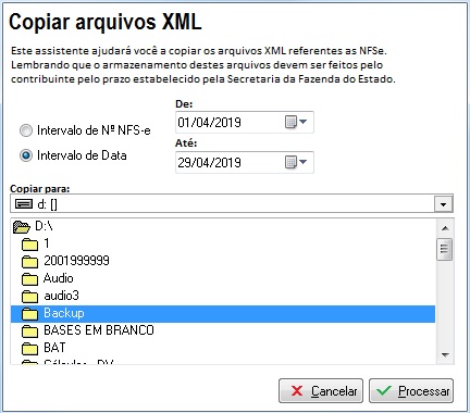 Efetuando o Backup ou Cópia de Arquivos XML da NFS-e