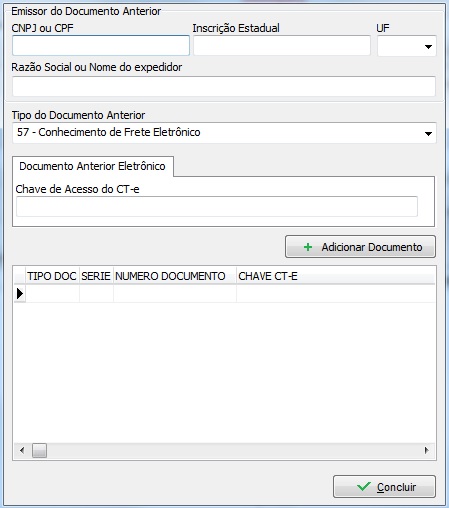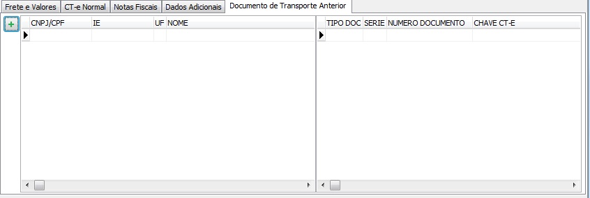 Além disso, será disponbilizada a aba Documento de Transporte Anterior.