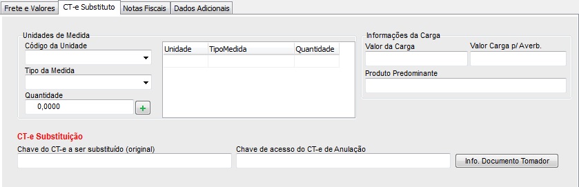Como o CT-e é de substituição, deverá informar os dados que substituirão o CT-e anterior.