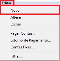Em seguda, abra um novo cadastro, clicando em Editar - Novo.