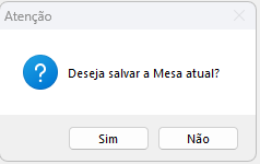 - Solicitar confirmação para sair do pedido/mesa/comanda - Ao acessar a mesa/pedido/comanda e clicar em outra mesa/pedido/comanda, o sistema irá questionar se deseja salvar a mesa/pedido/comanda.