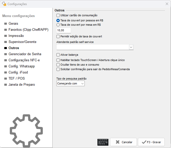 - Atendente padrão Self Service: Aqui poderá definir um usuário que será utilizado em todas as mesas e comandas abertas pela abertura rápida (Self Service).