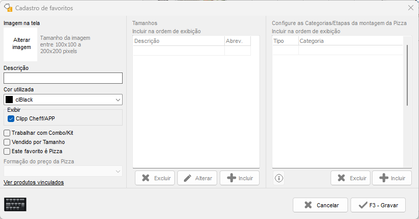 - Produto do estoque: Escolha qual produto do estoque irá compor este sub-favorito, poderá lançar diretamente pelo identificador, ou digitando as primeiras letras do produto e pressionando a tecla Enter.