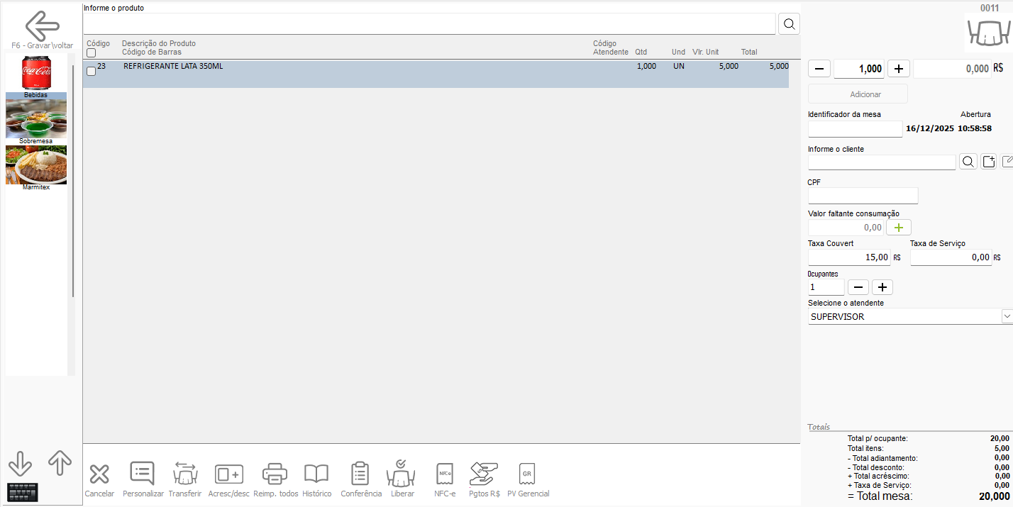 A partir daí, todo item lançado na mesa ou comanda, será considerado como lançado pelo atendente selecionado;