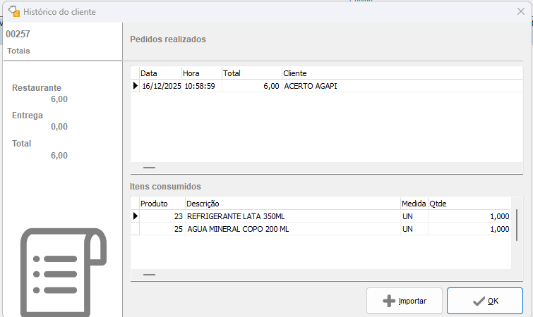 é possível trazer até o pedido atual, o pedido feito anteriormente pelo cliente.