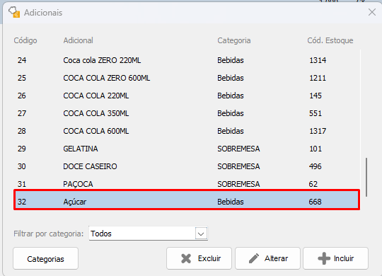 IO adicional não será cadastrado com um produto no estoque e terá movimentação de quantidade ao lançar na mesa. O Valor não é obrigatório, porém, se informado será considerado como um acréscimo.