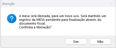 Esta opção permitirá liberar imediatamente a mesa/comanda, sem a necessidade de emissão de documento fiscal para libera-la.