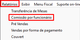 Caso for trabalhar com comissões, poderá observar os valores comissionados no menu Relatórios - Comissão por funcionário;