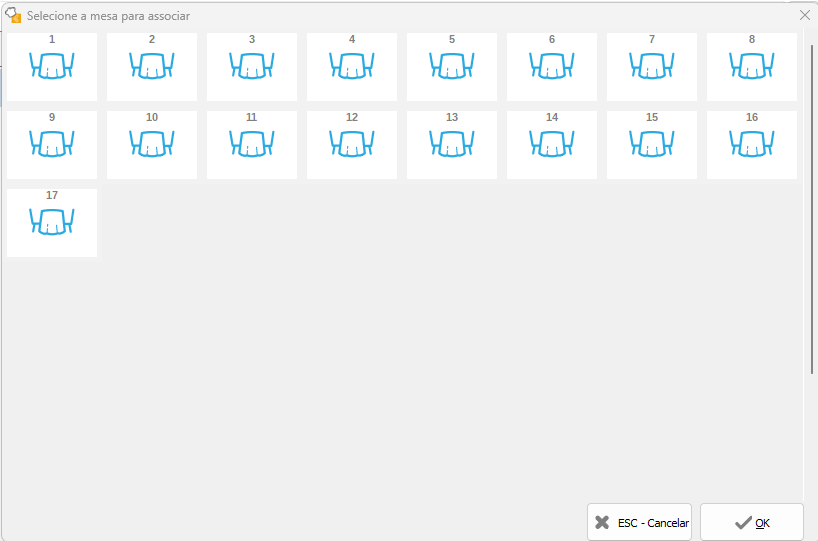Em seguida, selecione a mesa que o cliente está, clicando duas vezes na mesma e clique no botão OK;