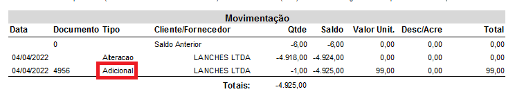 O item que foi adicionado na mesa ou comanda como adicional terá sua baixa de estoque feita nesse momento, você poderá conferir no histórico do item essa baixa: