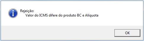 Rejeição: Valor do ICMS difere do produto BC e Alíquota no Clipp Pro