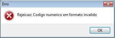 Rejeição: Código numérico em formato inválido no Clipp Pro