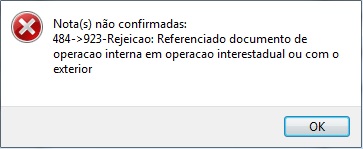 Rejeição: Referenciado documento de operacao interna em operacao interestadual o