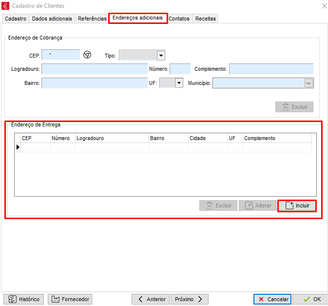 Clique no botão Endereços Adicionais e preencha o Endereço de Entrega com os dados do emitente, ou seja, os dados da sua própria empresa: