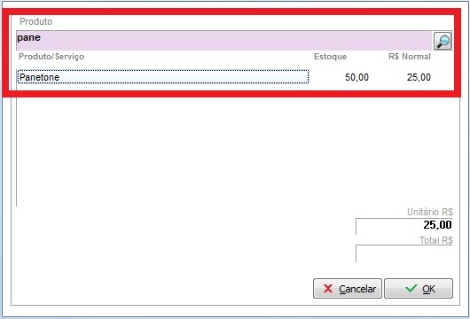 Digite o nome do produto que deseja incluir e clique duas vezes sobre ele na listagem abaixo.