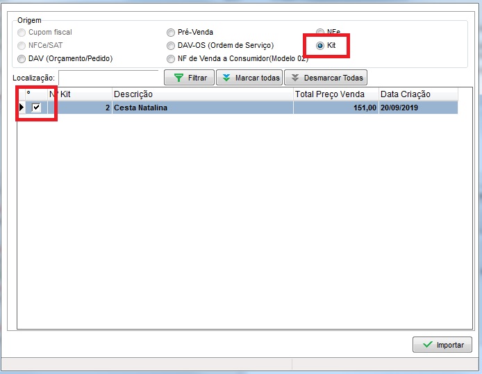 É possível importar o Kit para NF-e, NFC-e e Pedido de venda/Orçamento!