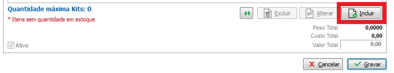 Logo abaixo, inclua os produtos que irão compor o kit, clicando no botão Incluir.