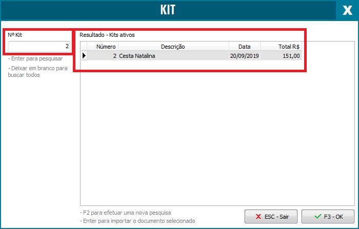 Na próxima tela, digite o número do Kit e pressione a tecla Enter.