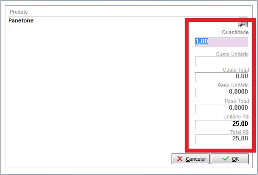 Na tela de caixa livre, pressione a tecla Insert e escolha a opção Kit.