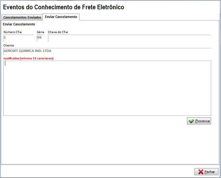 Preencha a justificativa do cancelamento e processe: